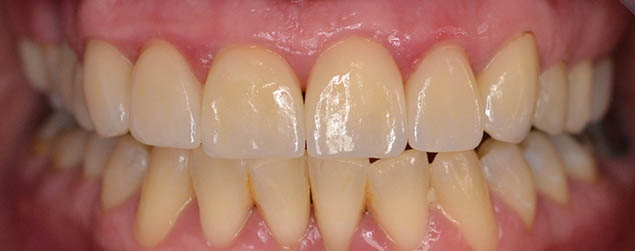 Šetrnost – pro celokeramické náhrady není nutné oslabovat zuby přílišným broušením, materiál je odolný i v tenkých vrstvách a lze ho vyfrézovat dotenka až 0,5 mm. Proto stačí odebrat jen opravdu minimální nutné množství tkání zubu. (foto s fasetami na LKS) - Fixace – celokeramické materiály je možno po speciální povrchové úpravě „nalepit“ na zub tak, že se stanou téměř jeho nedílnou součástí,